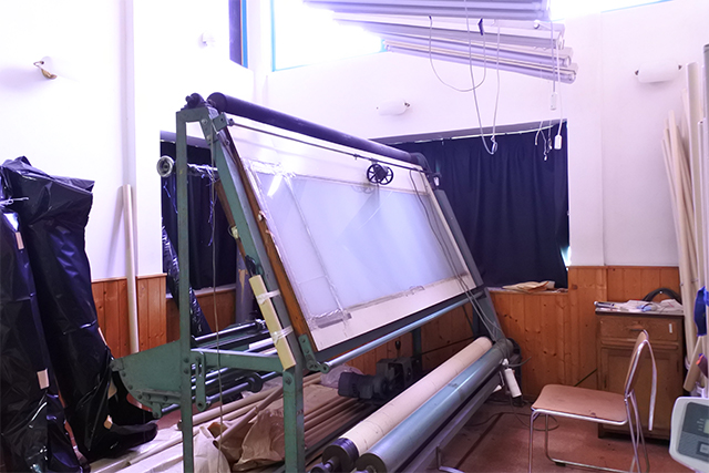 反物修整は生産された反物を検反・点検して、生産された反物にできる織キズ・糸切れ・筋立・織段・糸のつなぎめ(ボツ)の修整や、バー・ネップ・油汚れ等を取り除く作業です。